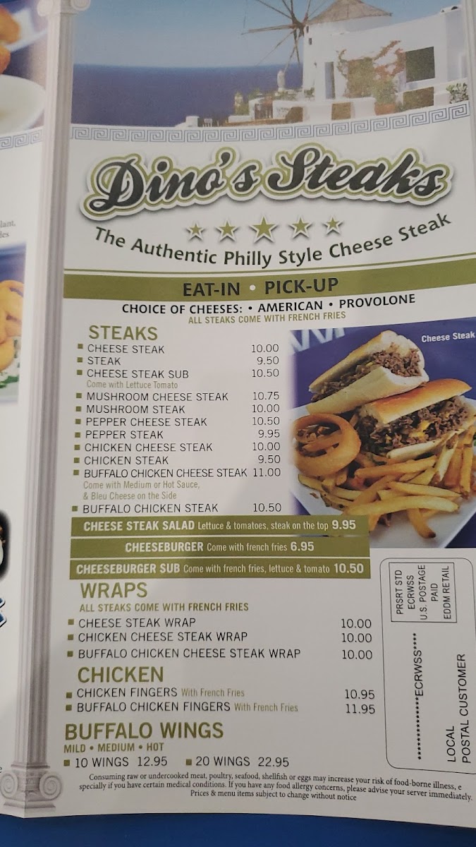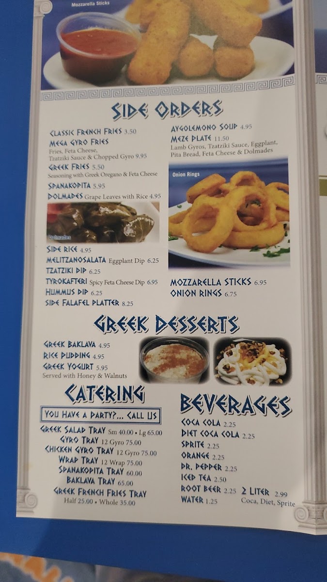 The menu at Opa! Opa! on Limestone Road offers a vibrant selection of Mediterranean and American fusion dishes, perfect for a hearty meal or a lighter bite. For wraps, you can enjoy choices like the Cheesesteak Wrap or the spicy Buffalo Chicken Cheesesteak Wrap. For those craving sliders, options include Beef Sliders and Lamb Sliders, each with a flavorful twist. The Big Greek Sandwiches section features classic pita options, including the Authentic Pork Gyro Pita and the ever-popular Chicken Gyro Pita. For a more substantial meal, the Salmon Souvlaki Platter with Rice and Lamb Souvlaki Platter with Rice stand out, with hearty portions and fresh, Mediterranean flavors. The wrap selection also includes the Gyro Wrap and Chicken Salad Wrap, perfect for lighter or on-the-go meals. Greek desserts such as the rich Greek Baklava and Ferera Chocolate Cake provide a sweet ending to any meal. For those interested in catering, Opa! Opa! offers generous dips like Hummus Dip and Tzatziki Dip in 24oz portions, ideal for sharing. The menu is rounded out by a selection of Dino's Steaks like the Buffalo Chicken Cheesesteak and a variety of Dino’s Chicken options including Buffalo Wings and Chicken Fingers. Whether you’re craving a quick snack or a full meal, Opa! Opa! has a diverse selection to satisfy every appetite.